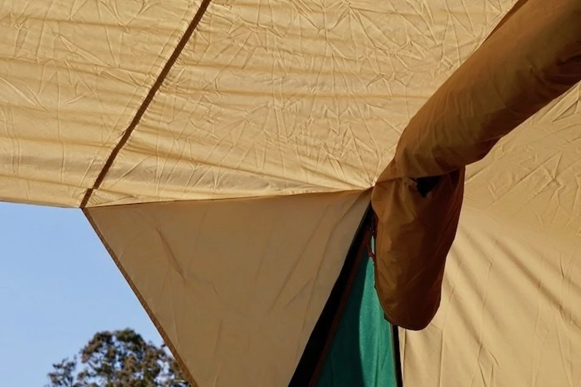 雨を気にせず、テントの出入りができる!