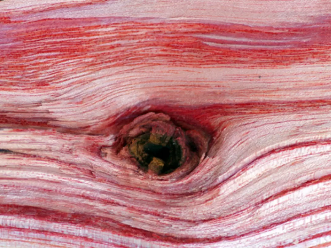 薪の節は、周辺の木目が変形していて、とても硬く、ナイフの刃を傷めてしまう可能性があります。なるべく節が無い薪を探して、薪割りをしましょう。