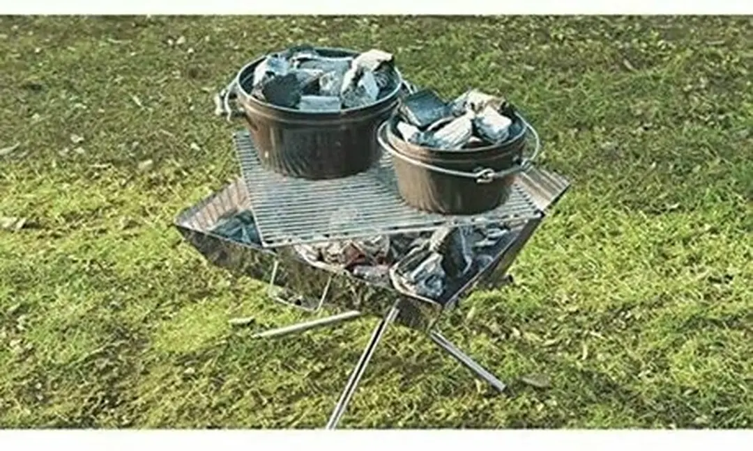 頑丈でサビにくい五徳です。熱したダッチオーブンを載せてテーブルへのダメージを防ぎます。シンプルな開閉式で幅広いサイズに対応し、収納もコンパクト。料理の入ったダッチオーブンを乗せても安定する頼もしいアイテムです。