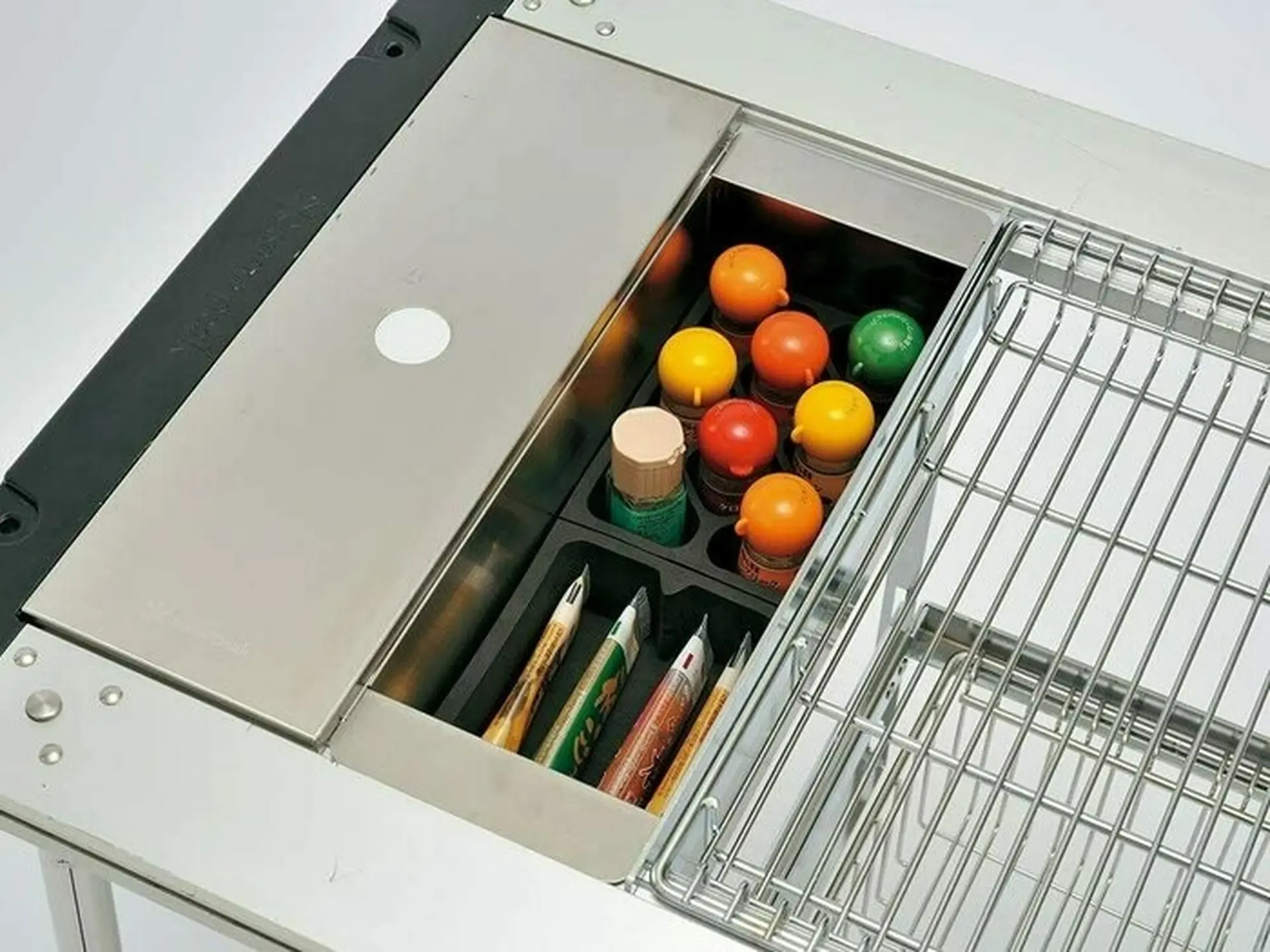 IGTで特に注目するのが、多彩なユニットオプション。家庭用のようなコンロ(ワンバーナー)、ツーバーナー、バーベキューコンロ、まな板、調味料ボックスなど、その数は圧巻です。バーベキュースタイルや鍋を使ったロースタイルなど、さまざまなオプションを入れていけば自由自在にカスタマイズできます。細かいにニーズにも対応し、痒いところに手が届くキッチンテーブルです。